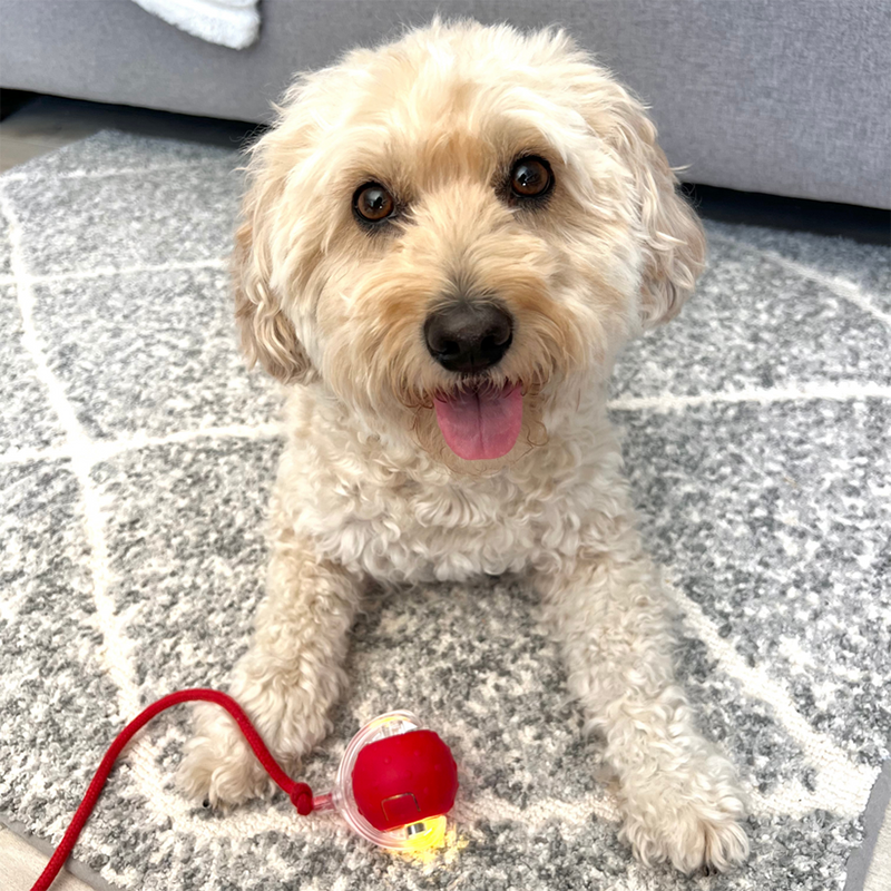 Our Chewie Rolling Ball is made specifically for the doggo like yours.