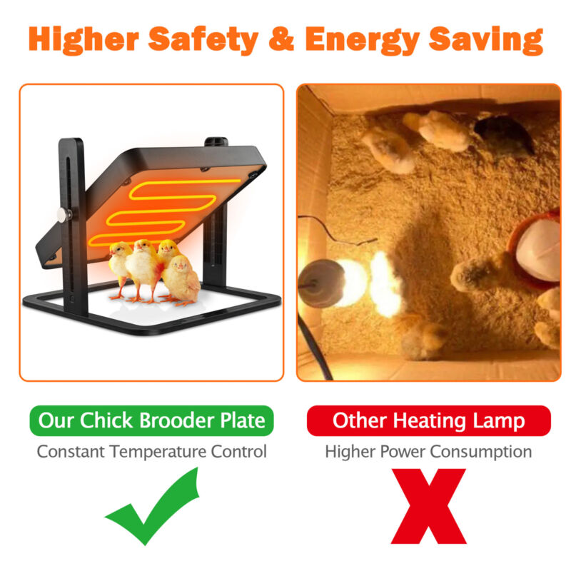 Higher Safety & Energy Saving - A safe alternative to a heat lamp, and there is less of a fire risk during heating; Can warm up to 15 chicks with only 13W power, saving your costs compared to a heat lamp; ETL listed plug & SAA certified power cord to ensure electricity safety