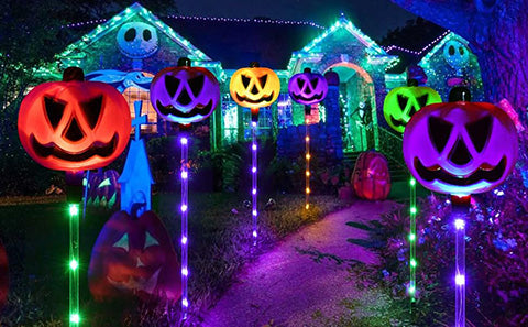 As night falls 🌙, little pumpkins glow warmly 🎃, skeletons flicker eerily 💀, and ghosts float with a soft, playful light 👻. Your garden instantly becomes the center of attention—neighbors stop to admire, kids can’t wait to knock on your door for treats, and your party guests are blown away by the atmosphere.