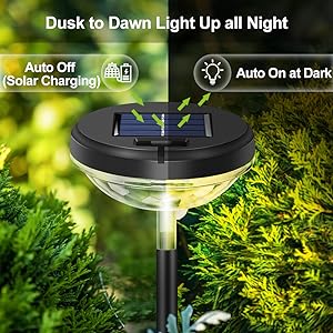 - [Auto Work] Solar pathway lights absorb solar energy during the day and automatically turn on at dusk.